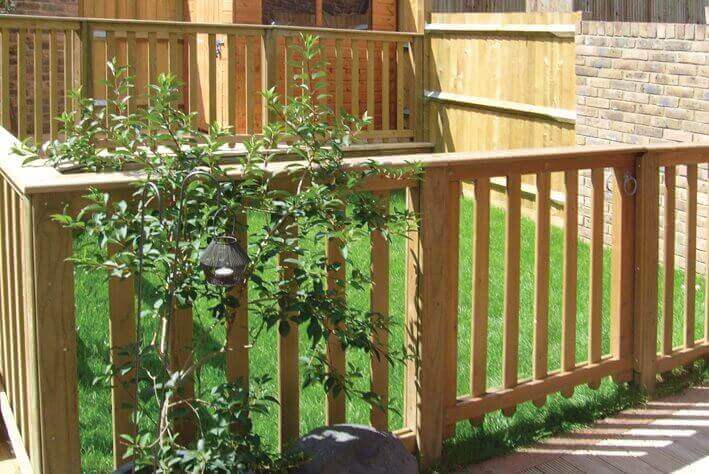 Note de sécurité : Nous recommandons, pour toute terrasse de plus de 600mm de hauteur, une balustrade ou un garde corps afin d'éviter tout risque de chute. Demandez-nous conseil sur les bons matériaux - des poteaux de renfort et couvertines peuvent être fixés afin d'éviter que l'un des panneaux ne puisse se déloger. Pour une terrasse de plus d'1m de hauteur, nous recommandons de faire appel à un professionnel en construction paysagère.